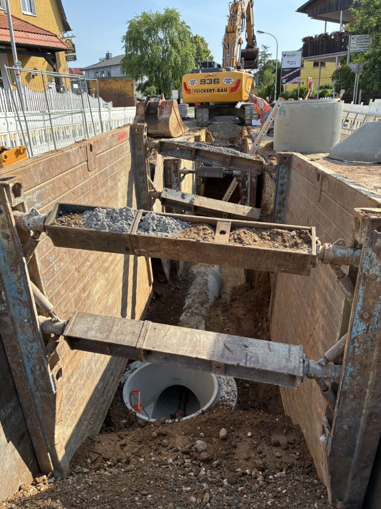 Dieser bleibt voraussichtlich bis Herbst 2025 am ehemaligen Schützenhaus (Ziegelei 5), um den Verkehrsdruck auf die Baustelle möglichst gering zu halten. In den warmen Monaten und noch etwas in den Herbst hinein besteht der größte Bedarf, den Grüngutcontainer anzufahren. Deshalb soll dieser leicht erreichbar bleiben und gleichzeitig den Verkehr aus dem Absperrbereich der Baustelle fernhalten. So erhoffen wir uns einen weiterhin zügigen Baufortschritt.