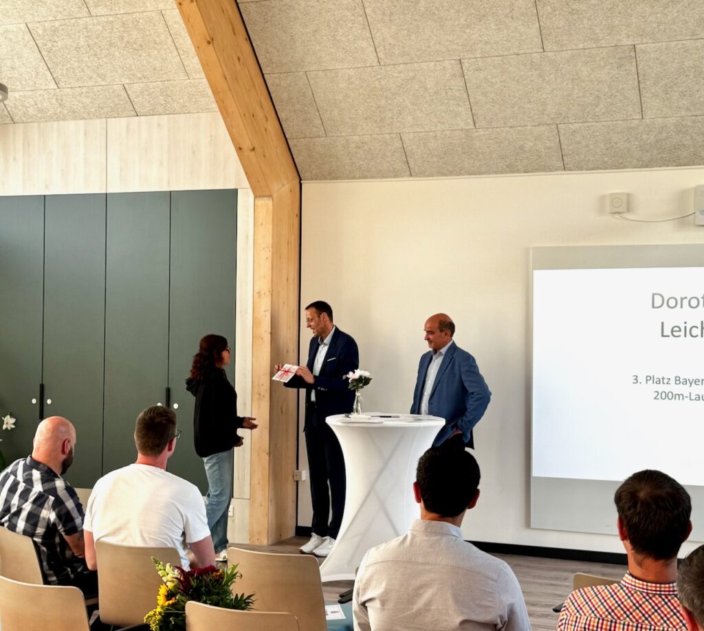 Höhepunkt des Abends waren die Auszeichnungen für besondere sportliche Leistungen. Dorothee Biese wurde für zwei dritte Plätze bei den Bayerischen Meisterschaften in der Leichtathletik geehrt, Karl Dorschner sogar für drei bayerische Meistertitel. Stefan Eichhorn überzeugte mit starken Wettkämpfen im Bereich Hyrox und qualifizierte sich für die Weltmeisterschaft, bevor ihn eine Verletzung vorübergehend ausbremste. Zwei Vizeweltmeistertitel sowie ein deutscher Meistertitel erreichte Jürgen Matschl im Bogenschießen und erzählte von den spannenden Erlebnissen bei der Weltmeisterschaft in Südafrika.