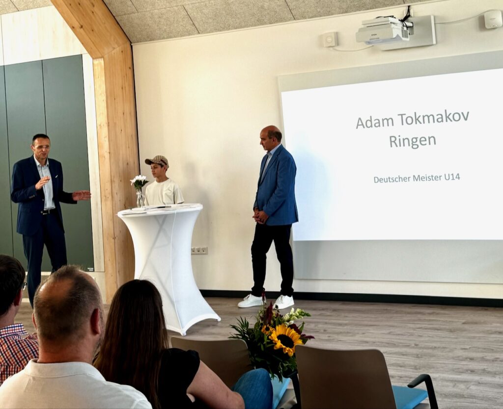 Ein besonders bewegender Moment war die Ehrung von Adam Tokmakov: Der 13-jährige Dörfles-Esbacher ist aktueller deutscher Meister im Ringen in der Altersklasse U14. In beeindruckender Manier gewann er alle Kämpfe ungeschlagen und ohne einen einzigen Gegenpunkt. Seine sportliche Leistung wird noch bedeutsamer im Licht seiner persönlichen Geschichte: Als Kind musste er eine Leukämieerkrankung überstehen – eine Zeit, in der die Stiftung für krebskranke Kinder Coburg der Familie mit großem Engagement zur Seite stand. Heute ist Adam gesund – und ein echtes Vorbild. Für seine herausragende Leistung wurde er mit der Gemeindemedaille in Gold ausgezeichnet. Auf die Frage, was sein sportliches Ziel sei, antwortete er ganz selbstbewusst: „Olympiasieger!“ Wir drücken Adam die Daumen, dass er weiterhin gesundbleibt und sportlich seine Ziele erreichen kann.